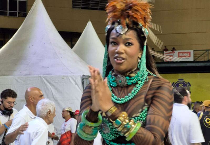 A comunidade descreve uma rainha que conhece o samba, que se mistura ao fluxo do ensaio, que frequenta a quadra e a rua como quem sabe que o Carnaval é feito de repetição, suor e insistência. A presença, ali, não é entendida como corpo em cena apenas. É presença de tempo, de dedicação, de energia que apoia e devolve coragem para quem está desfilando antes mesmo do desfile existir. Quando uma rainha está junto, a escola sente. Quando ela é percebida como “pela gente”, a comunidade canta com outra fibra.
